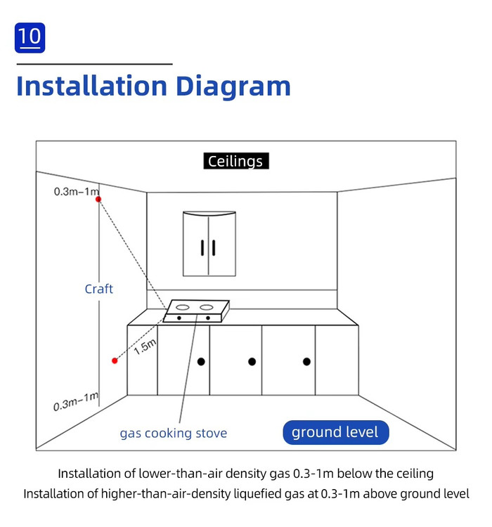 - فقط برای تشخیص گاز قابل اشتعال است و از تشخیص دود یا CO پشتیبانی نمیکند