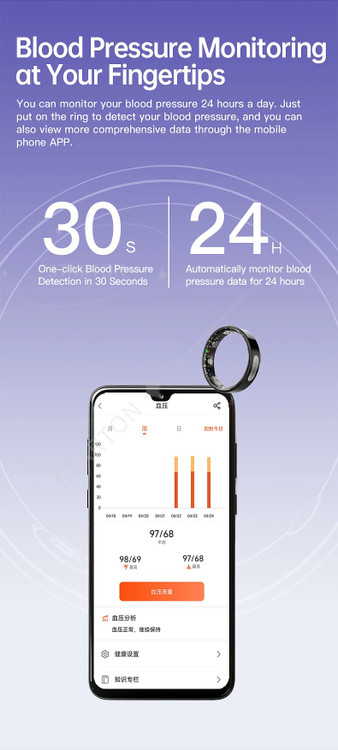 تجربه جدیدی از پایش سلامتی را با حلقه هوشمند TK30 آغاز کنید. این دستگاه کوچک، با دقت بالا، دادههای حیاتی شما را ۲۴ ساعته ثبت کرده و به شما کمک میکند تا به اهداف تناسب اندام و بهبود کیفیت خوابتان دست یابید. قلب تپنده این دستگاه، سنسور پیشرفته ECG است که امکان ثبت دقیق ریتم قلب را فراهم میآورد.
