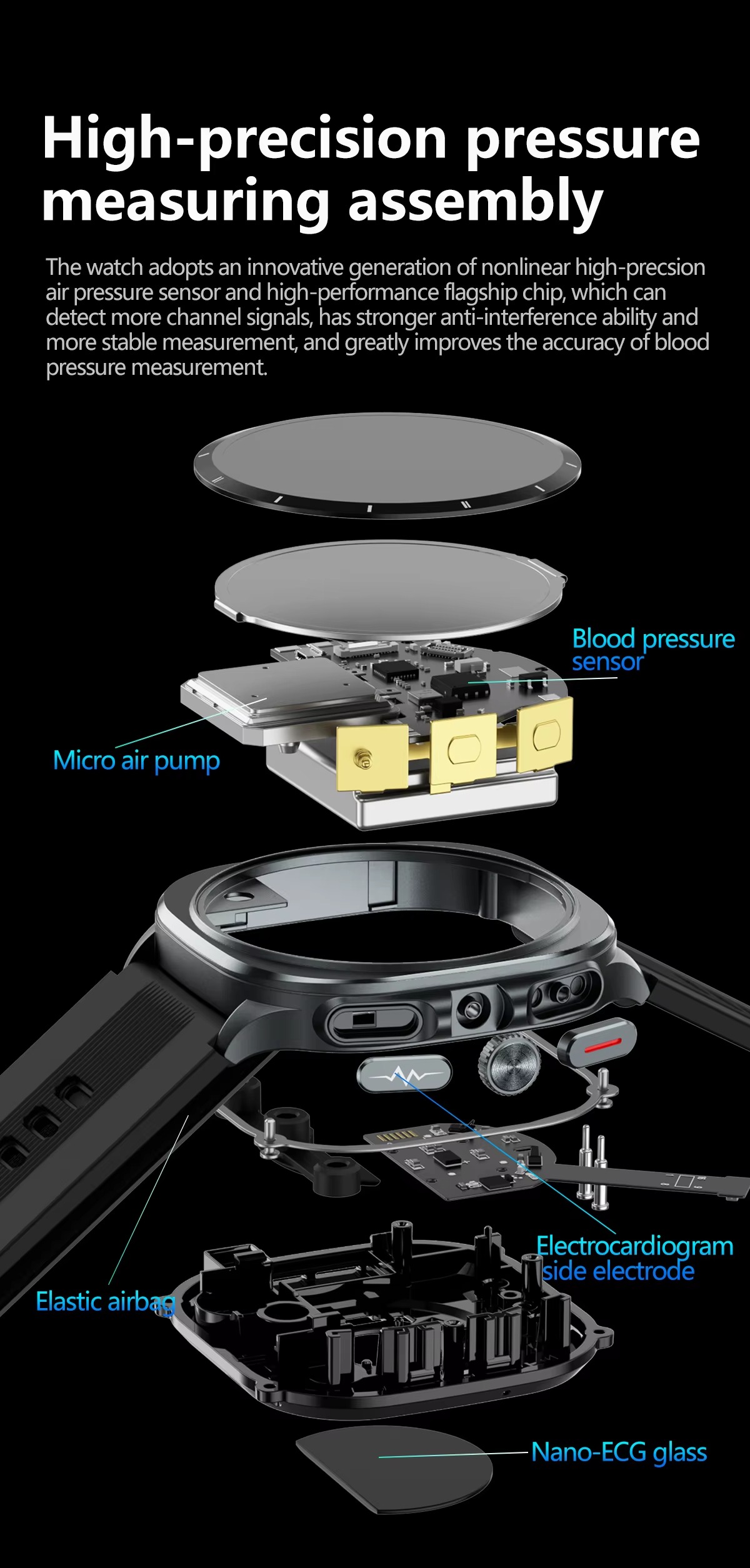 ساعت هوشمند TK62 با استفاده از پمپ هوشمند داخلی و فناوری فشارسنج کف بادی، اندازهگیری فشار خون را دقیقتر از ساعتهای هوشمند معمولی انجام میدهد. برخلاف سنسورهای لمسی معمولی که صرفاً فشار سطحی رگها را تخمین میزنند، سیستم پمپ هوا فشار واقعی داخل رگها را به صورت پویا ثبت میکند و نتیجهای نزدیک به دستگاههای پزشکی ارائه میدهد. این ویژگی باعث میشود پایش سلامت قلب و عروق شما حرفهایتر و قابل اعتمادتر باشد.