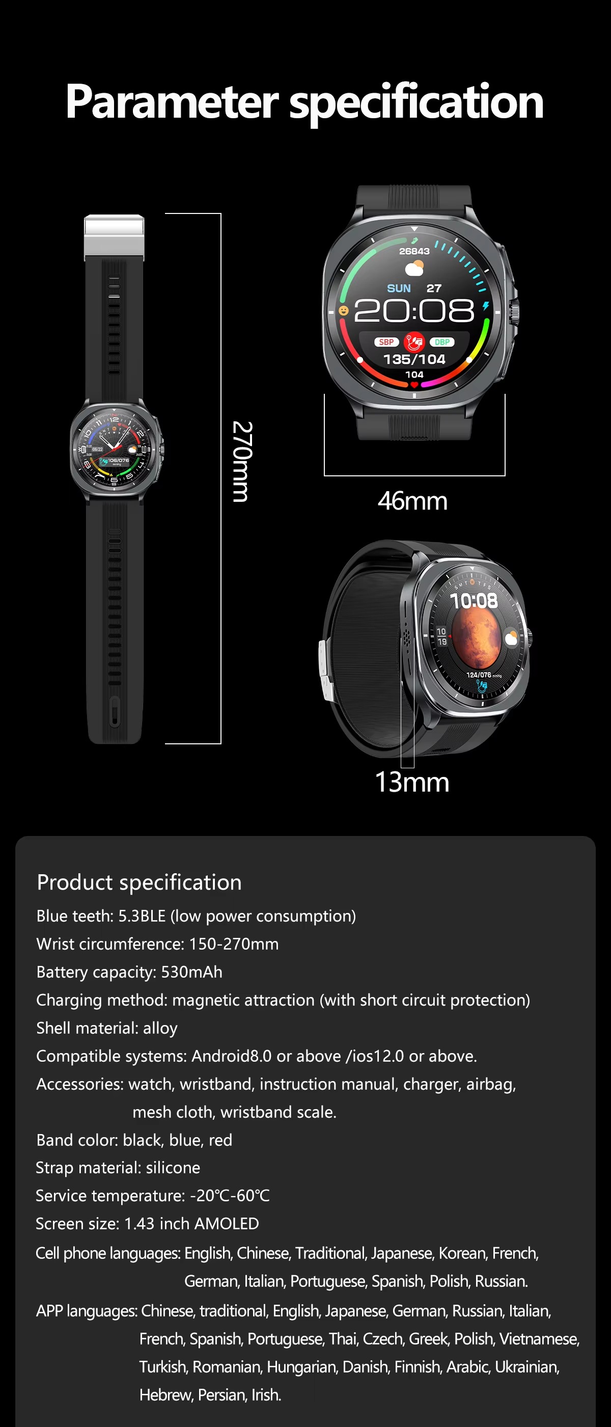 | زبان منو ساعت | چینی، انگلیسی، ژاپنی، آلمانی، اسپانیایی، روسی، فرانسوی، ایتالیایی، پرتغالی، لهستانی، عبری، چکی |