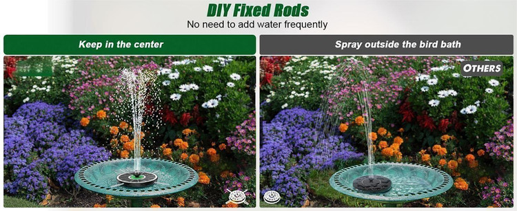 مزیت فواره خورشیدی کارکرد بدون نیاز به برق و باتری است زیرا انرژی مورد نیاز خود را از طریق پنل خورشیدی تعبیه شده در آن تامین میکند.