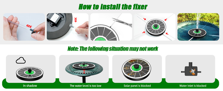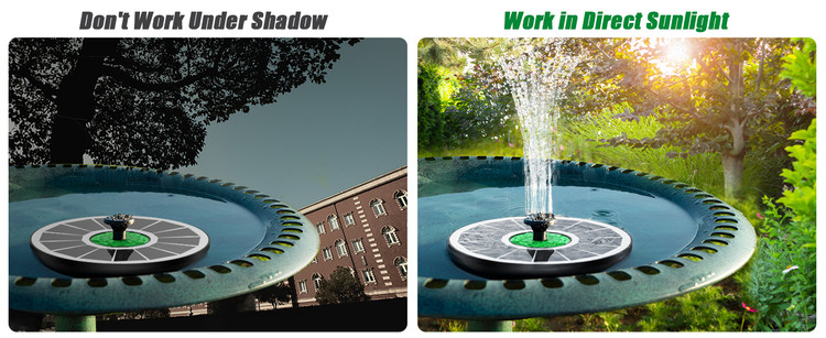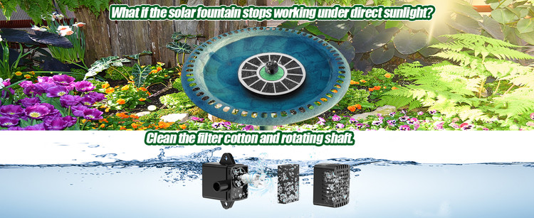 - زمانی که فواره خورشیدی در حال کار است، مواظب باشید که چیزی روی پنل خورشیدی آن قرار نگیرد زیرا می تواند باعث جلوگیری از رسیدن نور به آن شود و در نتیجه فواره کار نخواهد کرد.