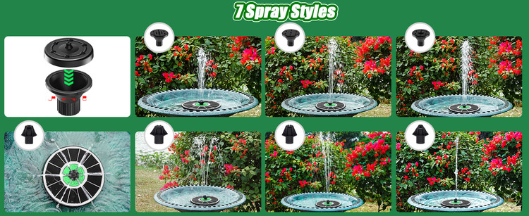 از دیگر مزایای این فواره کوچک و زیبا، داشتن 6 نوع نازل مختلف برای خروجی آب است که با استفاده از آنها می توانید شکل های مختلف پاشش آب را تجربه کنید و به سلیقه خودتان فواره را تنظیم کنید.